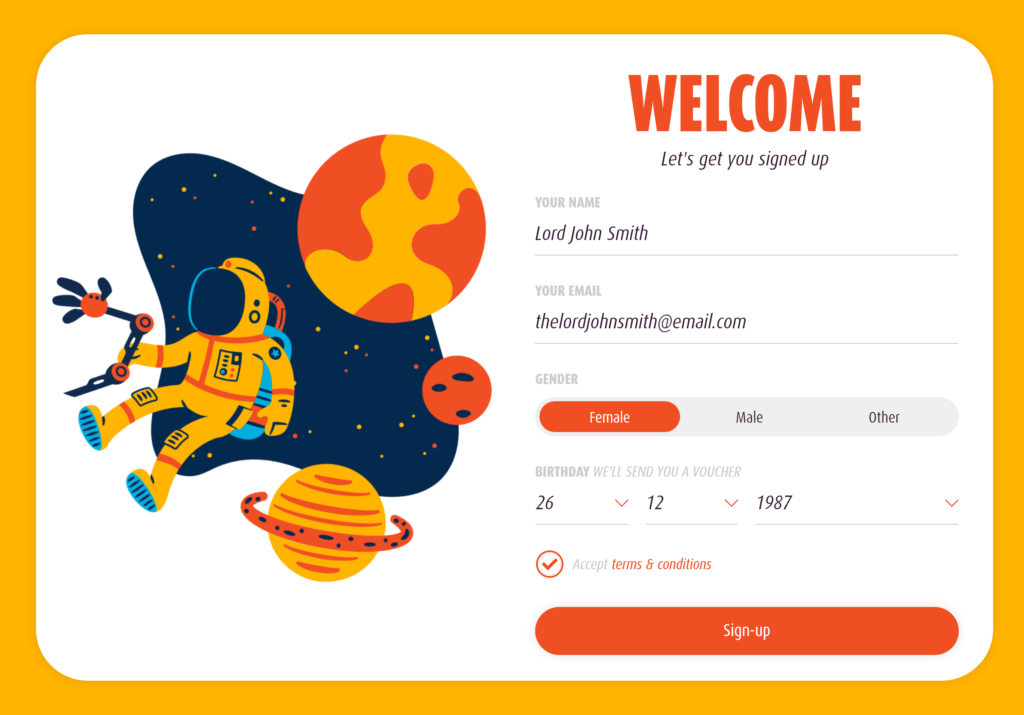 Sign-up Page Create a sign-up page, modal, form, or app screen related to signing up for something. It could be for a volunteer event, contest registration, a giveaway, or anything you can image.dailyui.co Sign-up page Alex Fuller Alex is currently a UX Designer for Euroffice. Back in Norfolk.